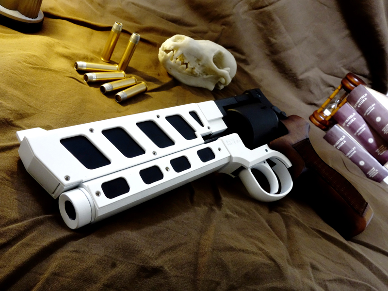 マルシン工業のガスガン「マテバリボルバー」をベースに、"とあるホネ妖怪が近距離銃撃戦で使用する専用カスタムリボルバー"という設定で製作したオリジナルカスタムです。