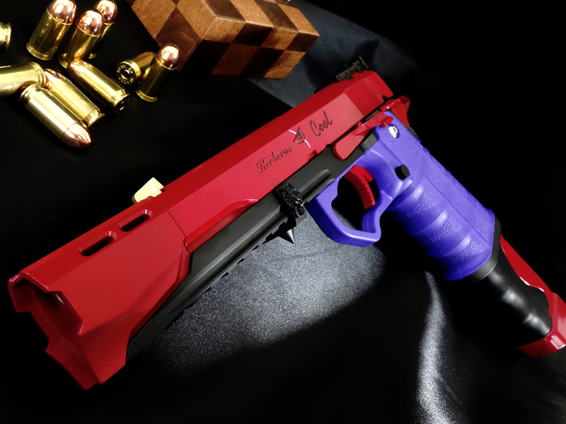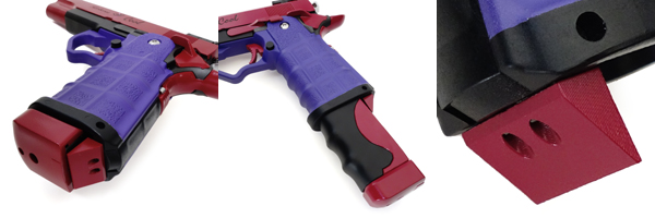 初期状態ではノーマルの黒パーツ。キングケルベロスになると赤いロングタイプに変化する。 ○黒は純正品。ロングタイプは市販パーツを赤く塗装しました。しかし「刹那」カスタムはスライドストップが機能しないので、実はただの飾りだったりします(;´Д`)