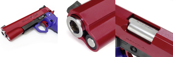 ○純正スライドの刻印を埋めて彫り直しました。光沢のある赤色で塗装後、刻印部分を黒、傷跡部分をピンクで色入れ仕上げ。