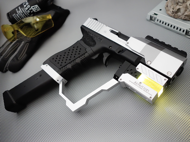 東京マルイの電動ハンドガン「グロック18C」をベースに、ゲームHaloの世界観で、日本所属スパルタン隊員のルーキーが持つ普及型M6系ハンドガンというイメージで製作したオーダーカスタム。
