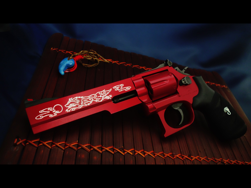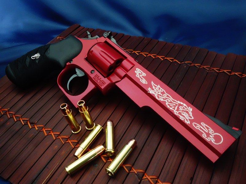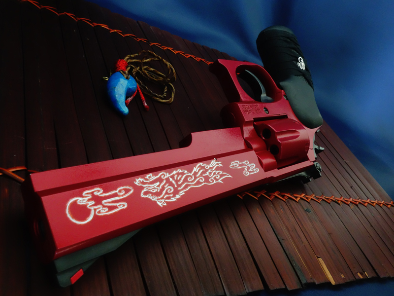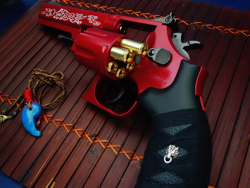 マルイのガスリボルバー/S&W M19 6inをベースに、戦う巫女の家系に生まれた少女が偶然出会った「紅い狼」と憑神として契約し、命を削って使用する"破魔の力を持ったリボルバー"という設定で製作したオーダーカスタム。
