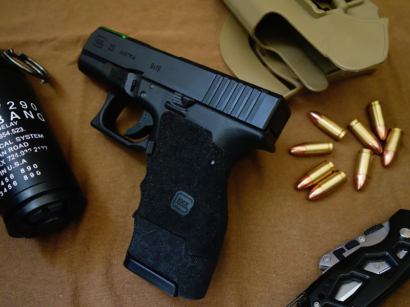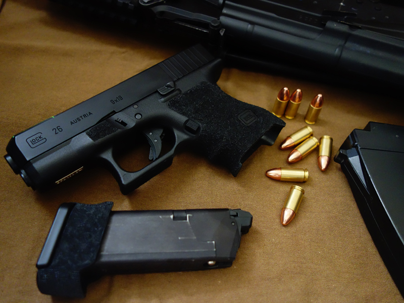 実銃はグロック社が開発したダブルアクションオンリーの現代的自動拳銃。フレームにプラスチックを使用した画期的な銃で、9mmパラベラム弾を使用。このG26はグロックシリーズの中でも特に小型で携帯性に優れ、コンシールドキャリー(隠し持つ)銃、またはメイン拳銃と一緒に携帯するバックアップガンとしてよく使用されています。