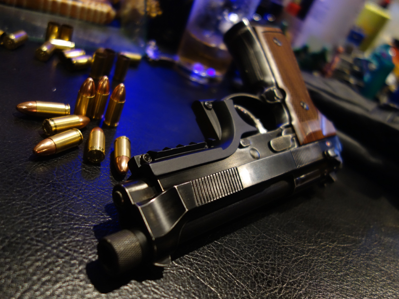 ○テイクダウンレバー・スライドストップレバー・ハンマーはマルイのタクティカルマスターの純正パーツに交換。さらにすべての黒染めパーツは一旦染めを落として磨き込み、スライドストップとセイフティレバーは低く削り落とした上でマットブラックで再塗装後、軽く研磨してヴィンテージ仕上げにしています。見た目以上に手間のかかったカスタムです(`・ω・´)b