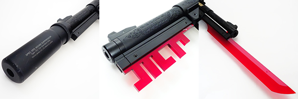 マズルカバーを取り外せばネジを切ったバレル先端にサプレッサーなどのオプション装備を装着できる。ベース銃のMk1は特に.22口径という小口径弾薬の特性上もともと発射音も小さく銃本体の構造的にも動作音が少ないためサプレッサー(減音器)との相性が非常によく、冷戦中期以降に特殊部隊や工作員が暗殺などにも使用してきた。バレル下にはアンダーリブが追加されており、この内部に後述の特殊な物質が格納されている。