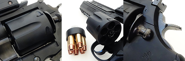 使用弾薬は.44レミントンマグナム弾。その威力はもとより、実用データの豊富さなども考慮して選定されている。フレーム及び操作系パーツは母体のコルト・アナコンダの純正品。