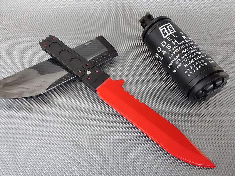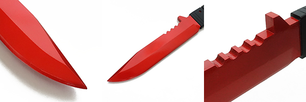 以前製作したことのある「CQCナイフ」をベースにグリップや特徴的な刀身の色をアレンジして、一見して「ムラサマのナイフ」とわかるようにデザイン&製作しました。
