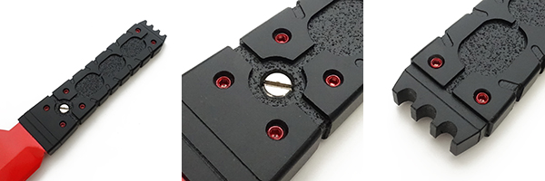 ○ブレードと同じくABS樹脂板を切り出し研磨したフルスクラッチ製作です。ボルトは本物の金属製イモネジを使用。全体に艶消しブラック塗装仕上げ(・∀・)