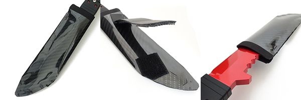 高強度カーボン素材のシース(鞘)。非常に軽量で強度に優れる。