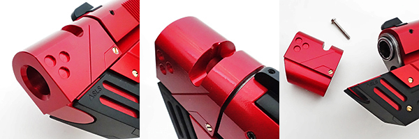 発射時のガスを効率良く逃がして反動を抑えるコンペンセイターが装着されている。側面には放熱孔も設けられており、熱も籠りにくい。