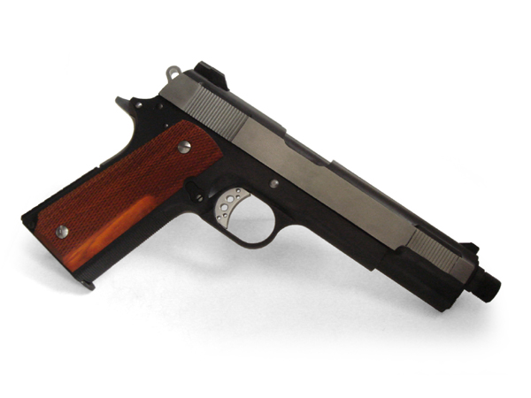 実銃は銃器メーカーのコルト社によって軍用に開発された大型自動拳銃。1911年にアメリカ軍に制式採用され、軍用拳銃として後継となるベレッタM92Fが制式採用されるまで、実に70年以上にわたってアメリカ軍の制式拳銃として使用されました。.45ACPという大口径弾を使用するこのモデルは、威力の大きさと信頼性の高さから現在も未だに愛用者が多く、20世紀における世界各国での自動拳銃開発に対しても非常に大きな影響を与えた傑作自動拳銃です。