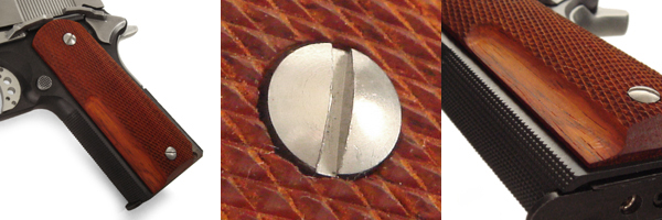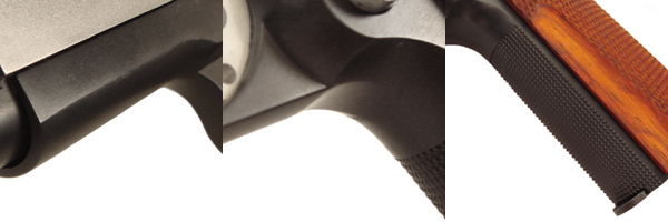 グリップのフロントストラップ部分には手に食いつくようなチェッカリングが施してある。握った際に滑らないので、命中精度向上も期待できる。