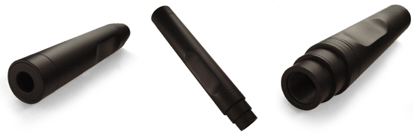 素早い着脱のために側面の一部が面取りされ、回しやすくなっている。減音効果は高いが、燃焼ガスを内部に取り込むため使用するたびに劣化する。