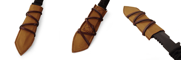 スネーク(ビッグボス)はこれを左胸に装着し、素早く抜いて即座にCQCに移行できるよう工夫していた。裏面にベルトループが付いており、上から革紐で縛りつけることでベルトを通してもずれにくくなっている。