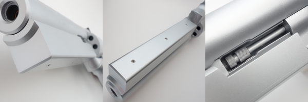 ○アルミ素材削り出しで製作。アルミとはいえ塊を削り出しているので、実際にけっこう重たいです。ベースパイソンのアンダーラグ部分に穴を開けて、3つのイモネジで締めて固定してあります。