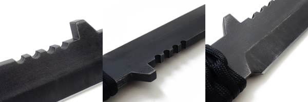 ブレード峰側にはセレーション(鋸歯状)加工が施され、その後部には指かけのような突起もついている。