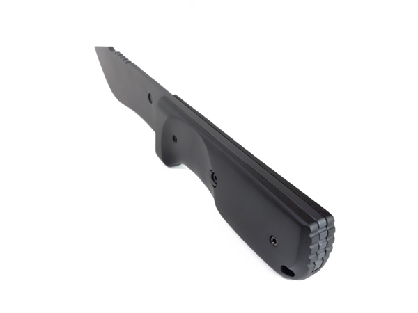 ブレード自体の形状が大きく削り磨かれた薄刃形状であることと合わせて検証してみると、この変更によってこのナイフは刺突・切り裂きともにかなり殺傷能力が増したのではないかと考えられる。