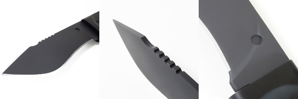 表面の仕上げはパーカライジング(リン酸塩化成処理)で、ほぼ全体に艶消しのダークグレー色に染められている。これは錆止め効果の他に、隠密行動時にナイフに光が反射せず存在を気づかれにくい、といったリスク回避の意味もある。