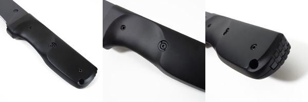 グリップは樹脂製で、ブレードとマッチした曲線的なデザイン。上部が大きく抉られており、握り込む事で自然に力を込めやすい形状になっている。