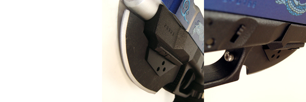 日本刀をイメージして丸みのあるブレード形状にしました。レールへの固定部分のデザイン(三つ穴とか)にはちょっとSFっぽさも持たせて、本体との融和性も持たせています。