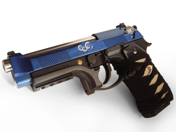 このM92Fのカスタム版を、性能・品質共に信頼性抜群の東京マルイがモデルアップ。元々基本性能が安定してる同社のM9ミリタリーに様々なタクティカルパーツを搭載したモデルです。「都会でのストリート・ファイト」を想定して製作されたというだけあって、本当に実戦的に有効な工夫が随所に見られます。たとえばホルスターへの収まりとドロウを素早くする短いバレル、瞬時に感覚的なサイティングができる3ドットサイト、対象から視線をそらさずに確実なマグチェンジができるロングタイプ・スライドストップなどなど。そして何よりユーザーとカスタム師にとって嬉しいのは通常のM9とパーツの互換性があるってところです(笑)