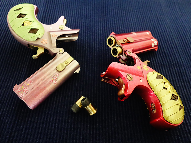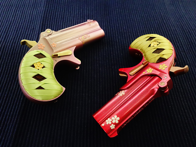 この二種類の美しい桜の花をモチーフにした和拵えの二丁セットが今作、デリンジャー和カスタム"染井吉野・河津"である。