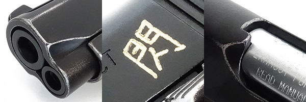 ○フロントサイトは角を落とし、白ドットを埋め込み加工。リアは無加工です。