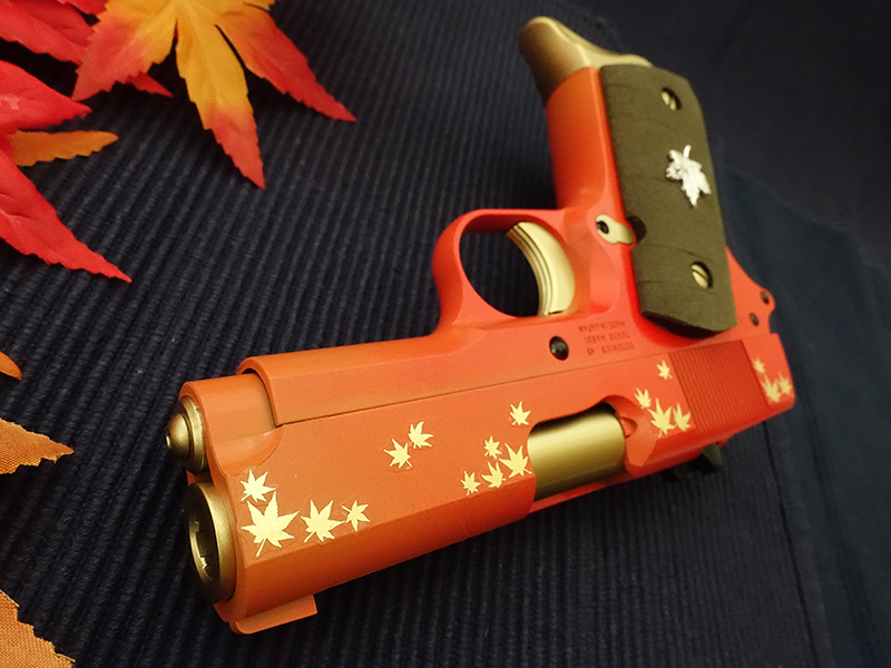 以前、春の桜をモチーフとしたデリンジャーも製作しましたが、今回は深まる秋の季節感を表現できたでしょうか。